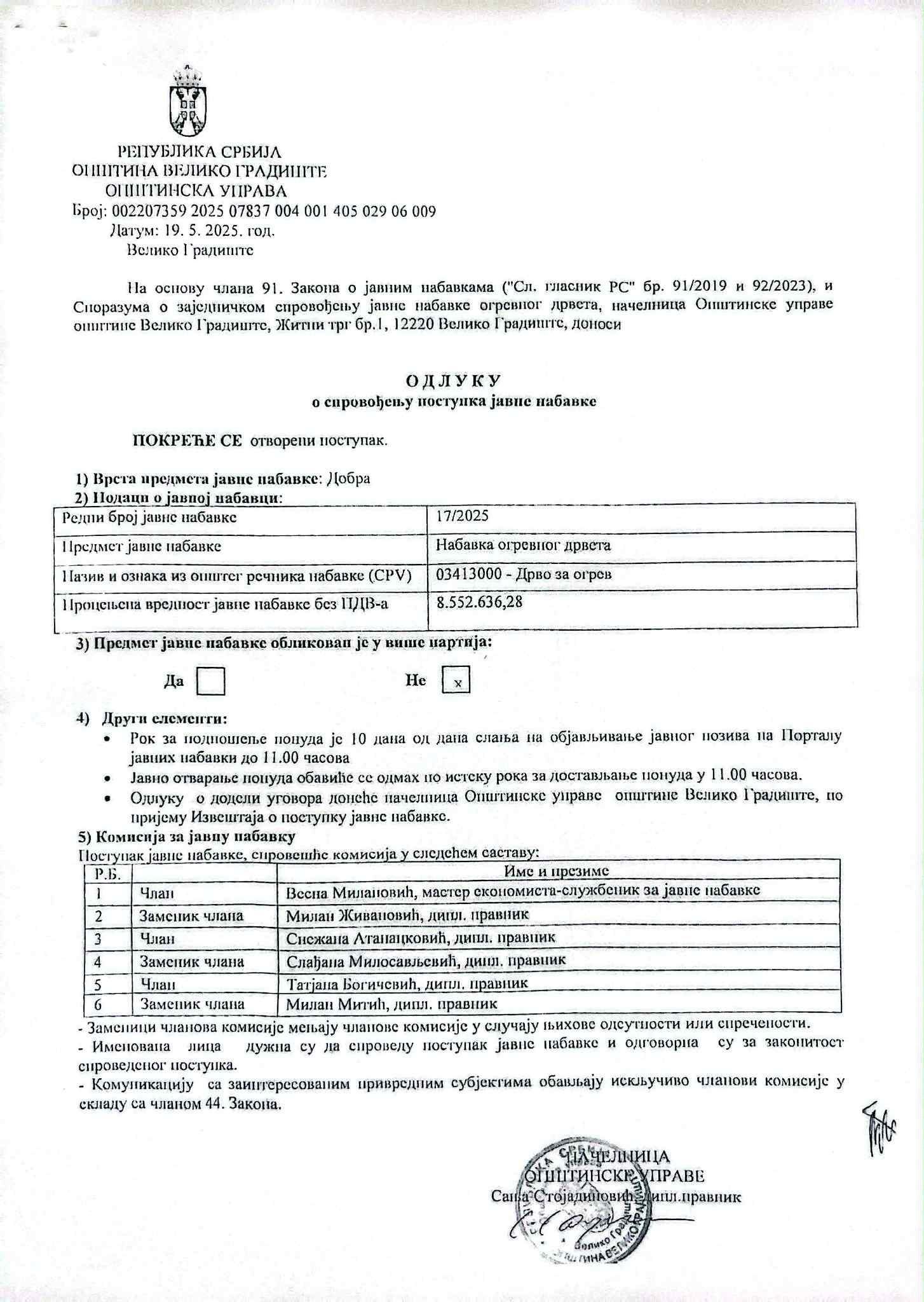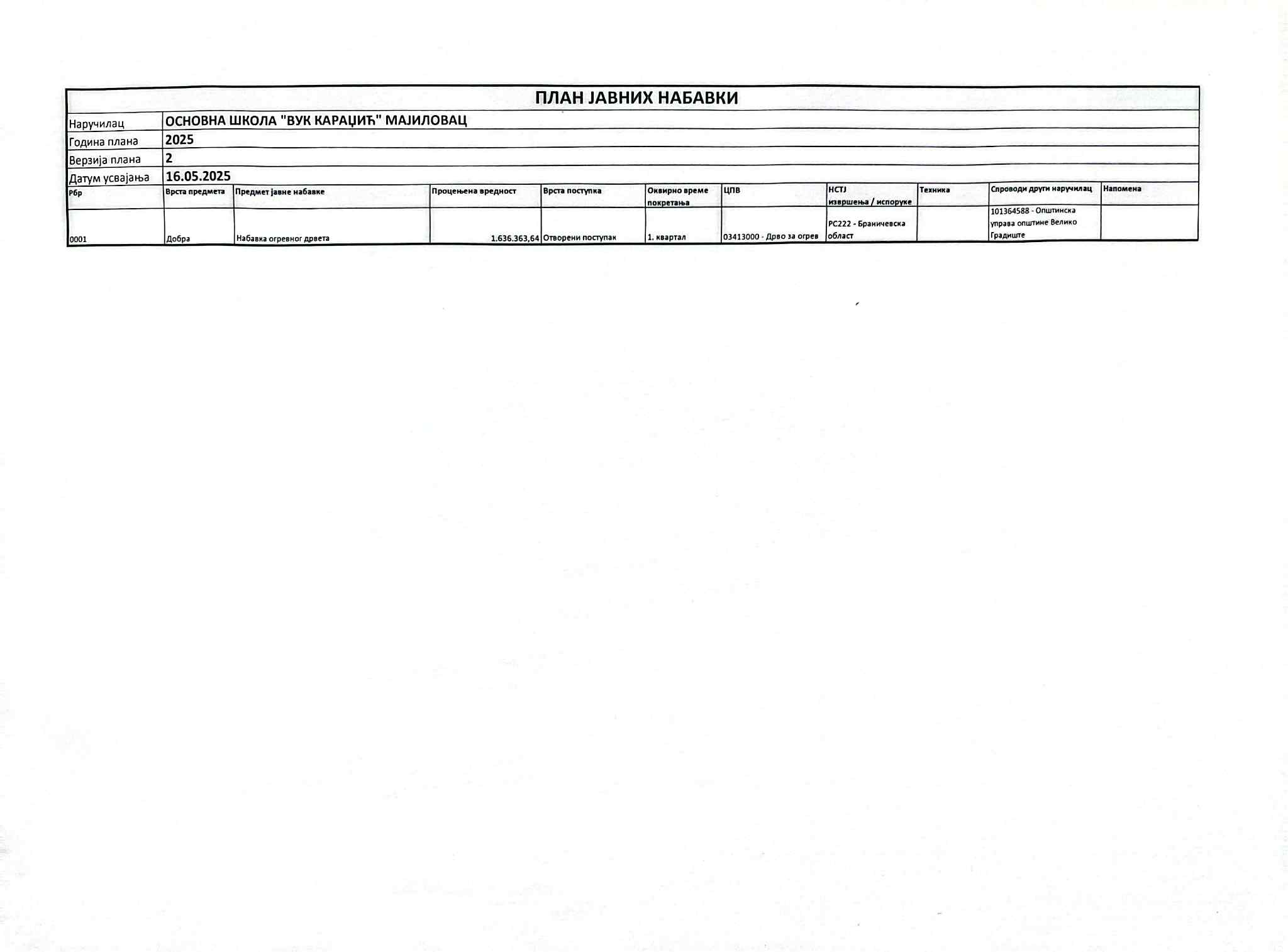 ПЛАН ЈАВНИХ НАБАВКИ ЗА 2025. ГОДИНУ ОДЛУКА О СПРОВОЂЕЊУ ПОСТУПКА ЈАВНЕ НАБАВКЕ ЈАВНА НАБАВКА ОГРЕВА ЗА 2025. ГОДИНУ