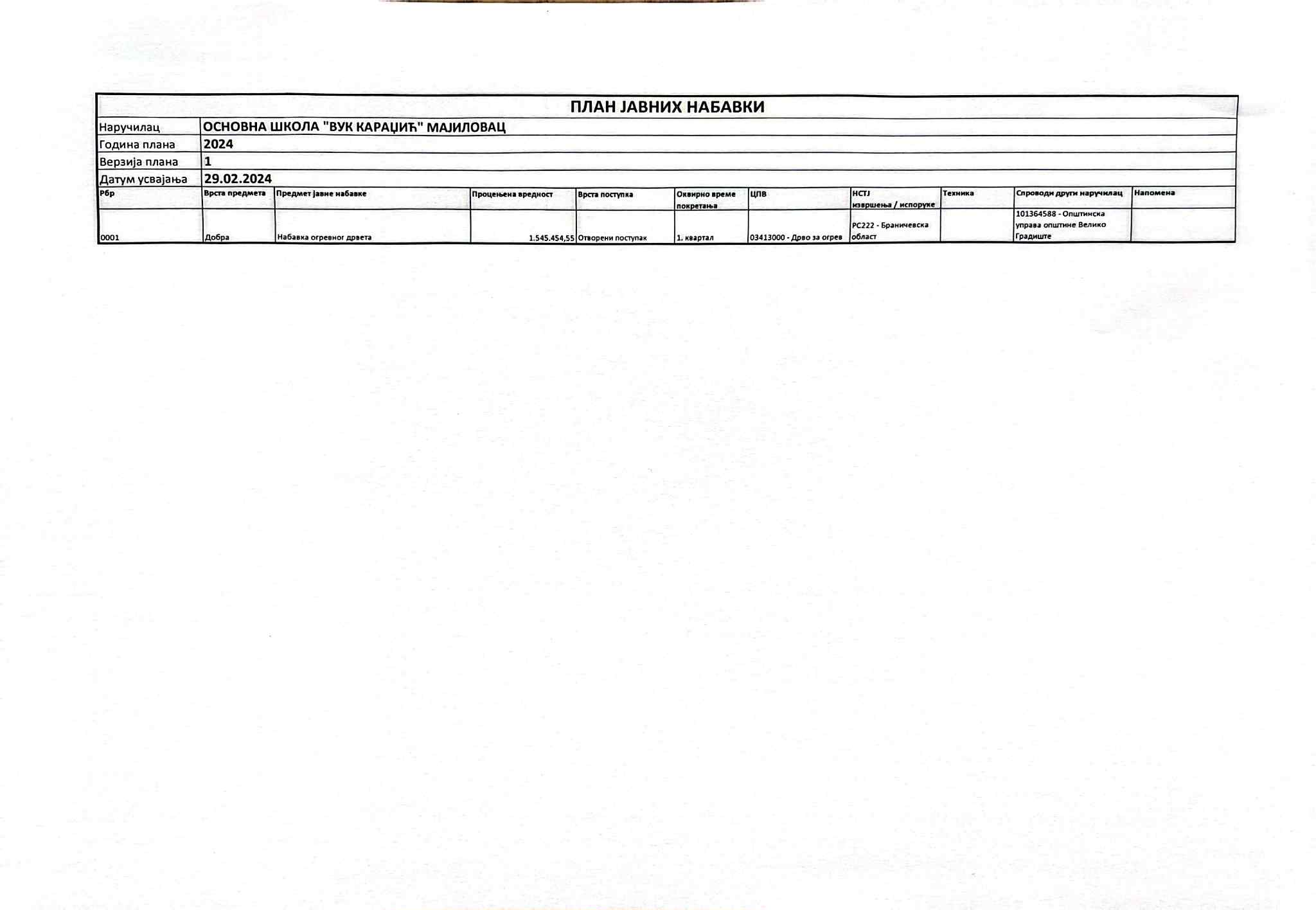 ПЛАН ЈАВНИХ НАБАВКИ ЗА 2024. ГОДИНУ