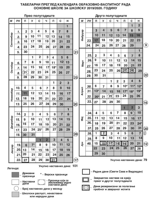 ИЗМЕЊЕН КАЛЕНДАР ОБРАЗОВНО-ВАСПИТНОГ РАДА ЗА ШКОЛСКУ 2019/20.ГОДИНУ