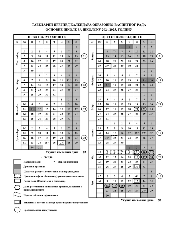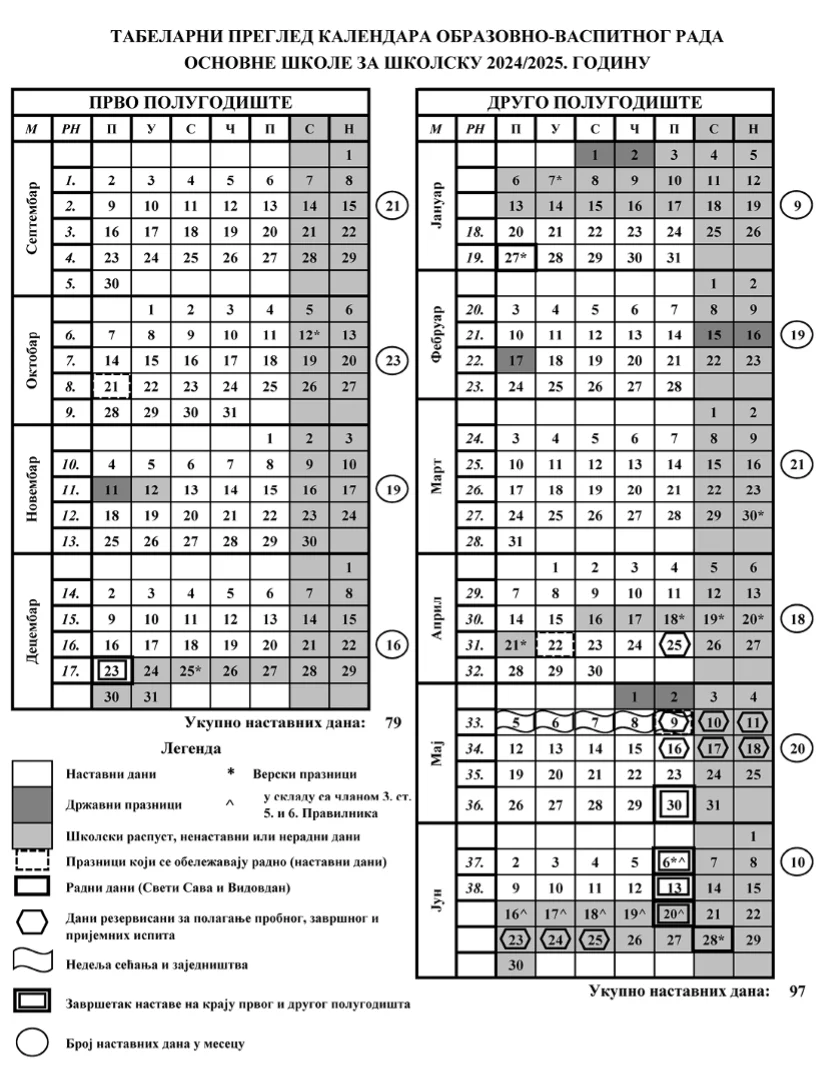 ИЗМЕЊЕН КАЛЕНДАР ОБРАЗОВНО-ВАСПИТНОГ РАДА ЗА ШКОЛСКУ 2019/20.ГОДИНУ